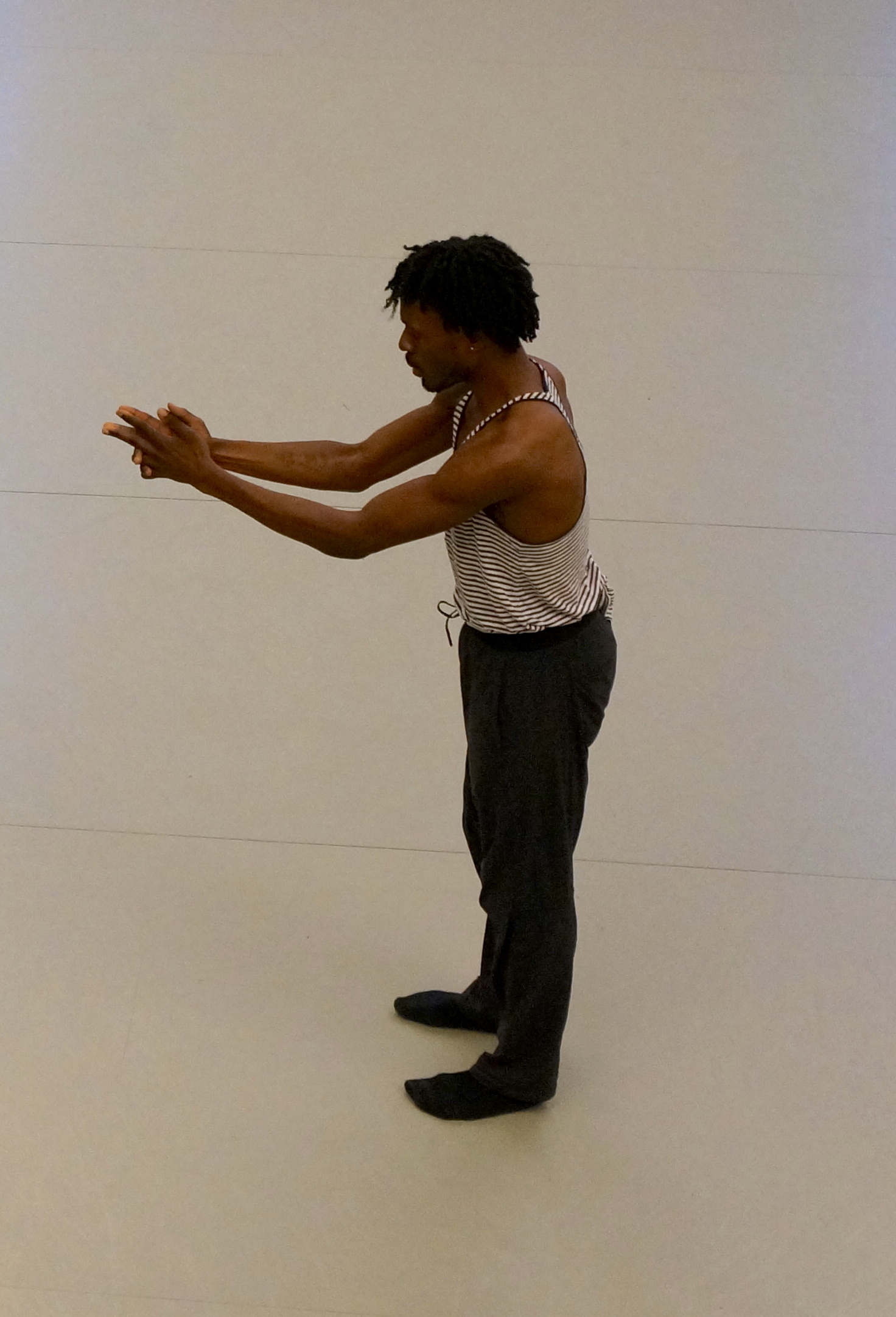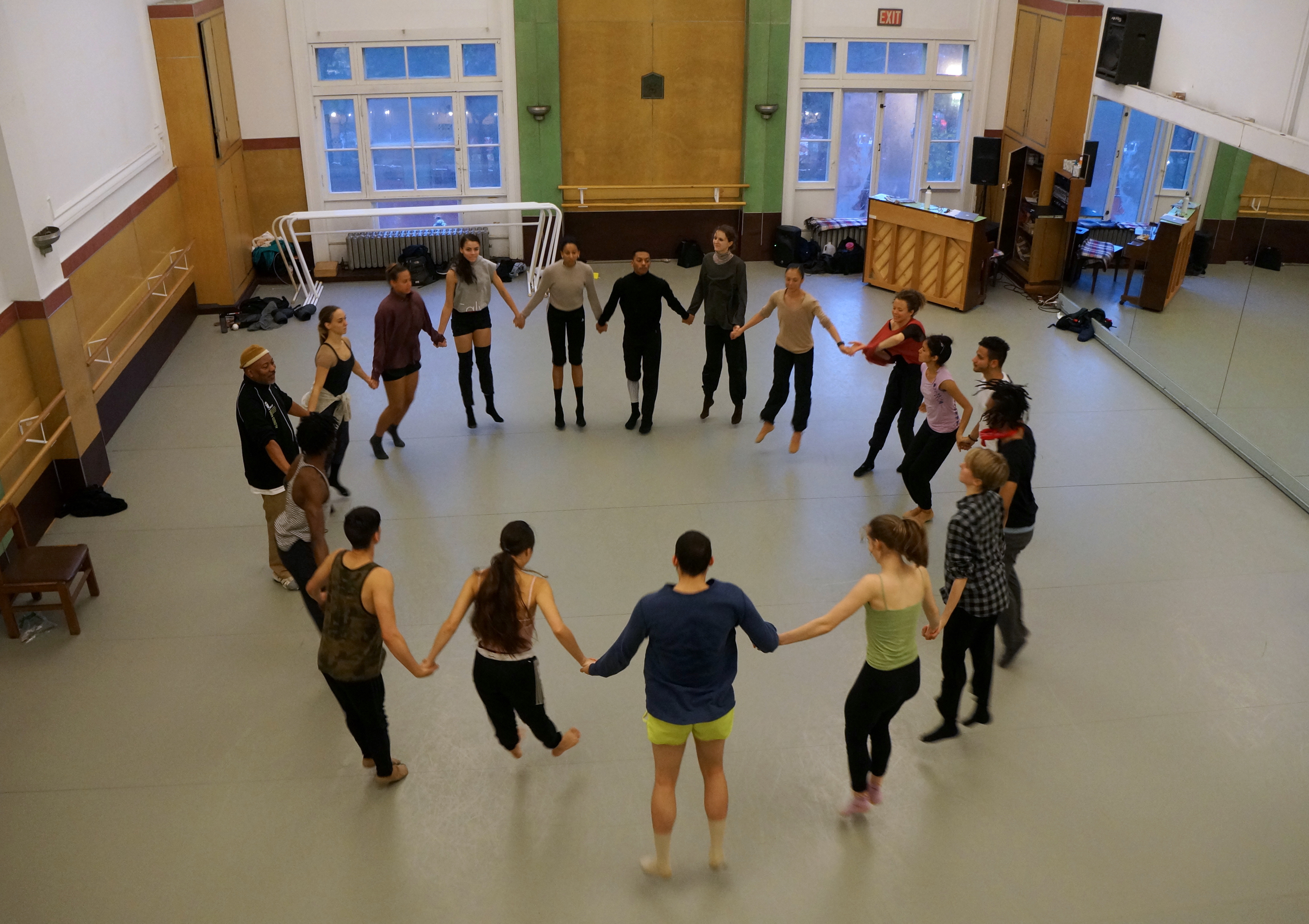Blindness and sight, both as tangible physical realities and as metaphors, continued throughout the workshop. Alonzo asked us to truly see each other and permit ourselves to be seen. In learning choreography we dropped affectation and self-consciousness in order to more directly perceive essence. He asked us to inhabit movement and search for new possibilities inside our own bodies.