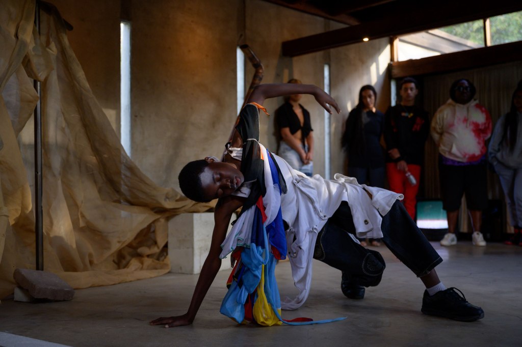 When COVID-19 closures swept across the country mid-March, Chris Emile‘s newest work, AMEND, had just begun a run of performances at Los Angeles’ MAK Center. A member of LINES Ballet BFA at Dominican’s inaugural class, Chris is currently an LA-based freelance director and choreographer working in film, fine art, commercial, and opera mediums. In AMEND, he explores Black male identity through movement, cinema, sculpture and sound – employing archival and contemporary found footage with artifactual set design to re-render MAK’s Schindler House into a sacred, private place: a home amenable for Black dealing and healing. An intergenerational cast of three dancers acting as one man, move the audience through the house and through time, working their way through the question: who, if not me, decides what a Black man is?