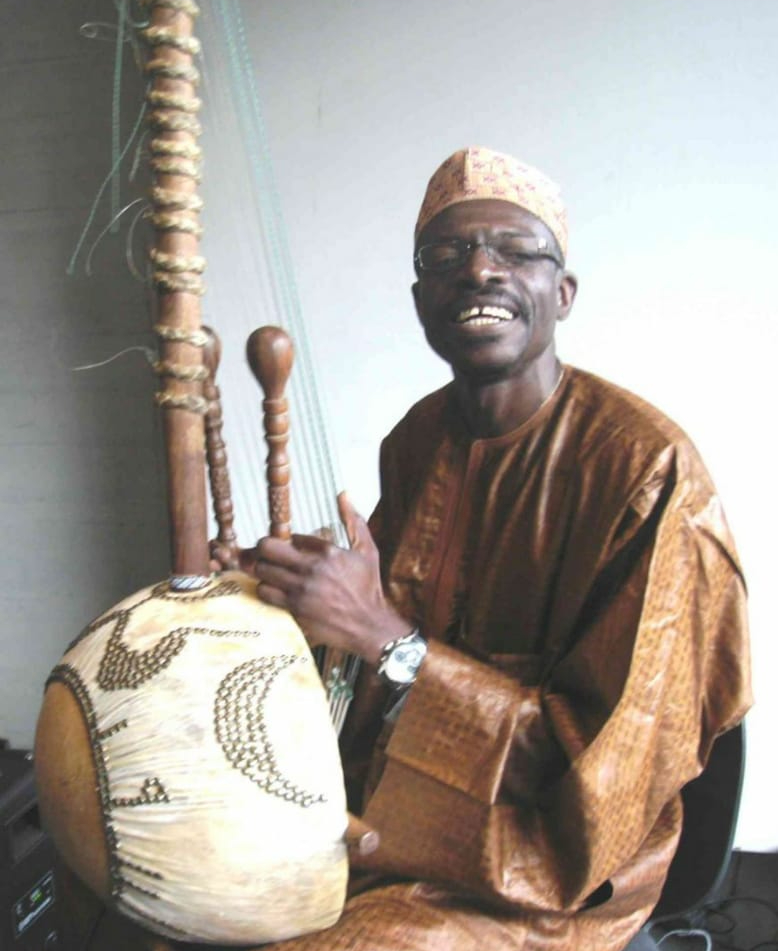 Adji Cissoko’s cousin Youba Cissokho with the family kora; Adji Cissoko’s father Seni Cissoko with the family kora