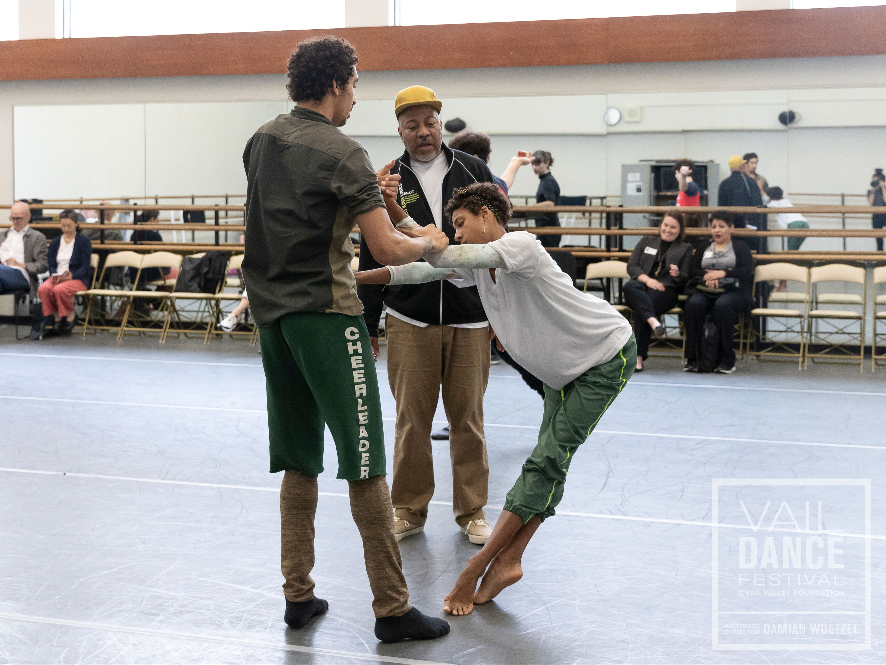 Alonzo King, Adji Cissoko, and Shuaib Elhassan rehearsing The Personal Element for Vail Dance Festival